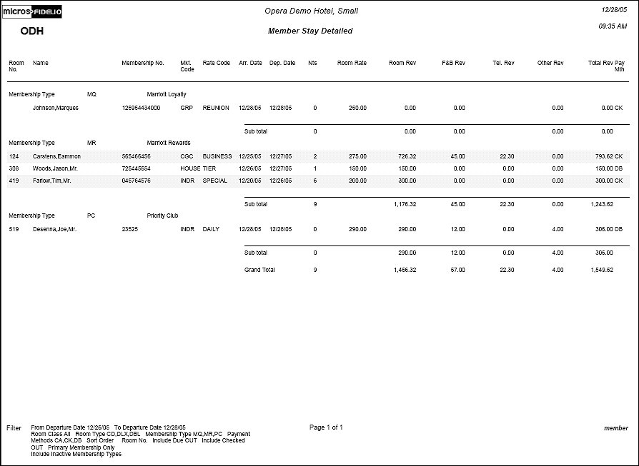 The Member Report displays all reservations that have or had a membership attached to the reservation. You can choose to filter on Reservations who are due to depart and who have already departed.